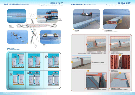 沉管浮云沉放對接過程示意圖(中交聯合體提供) 南方日報訊(記者/向松陽 高國輝 攝影/王榮 發自珠海)自首節沉管5月2日從珠海桂山島浮運出塢,港珠澳大橋海底隧道首次“海底之吻”拉開序幕。經過4個晝夜的奮戰,5日晚10點(可能推遲,具體時間到時我再和向松陽核實),E1沉管成功實現與西人工島暗埋段的對接。這是國內首個實現外海深水安裝的沉管工程,也是迄今為止世界上規模最大、最具挑戰的工程。 5日下午,記者在西人工島島頭看到,完成系泊和絞移的E1沉管停留在離暗埋段5米的位置。據悉,首節沉管于3日凌晨在8艘拖輪的拖運下抵達西人工島島頭,并于4日早上6點多完成絞移。不過,在4日進行的沉放實驗中,因島頭的水流復雜形成漩渦帶來泥沙淤積,海底基床出現了一定高差偏差。“最高達到5-10公分,尾部泥沙較少,只高出1公分左右。”島隧工程項目副總工程師尹海卿說,這也是“沉管下不去”的原因所在。 這種狀況出乎工程師們的預料,據尹海卿介紹,考慮到島頭水流復雜,他們于4月30日進行過測試,當時的結果顯示滿足施工要求。5月4日完成檢查并進行分析后,施工人員抽空沉管內的水,讓沉管重新浮上來,之后10多名潛水員們開始了泥沙清理工作。“因為錨和纜繩都弄好了,沉管整個退出去的話要花10個小時,只能由潛水員去做。”至昨日下午2點,全部泥沙清理工作已經完成,這一過程中,平均每個潛水員要在水下作業2-3個小時。 昨日下午4點許,施工人員通過沉放駁上的操縱系統,往沉管內的壓載水箱注水,E1沉管開始緩慢下沉,并引導沉管前端的導向桿落入暗埋段上的導向托架內。整個過程需要保持管體2.996%的縱坡,最后再向前平移,通過吊繩使管節以勻速、平穩的速度落在碎石墊層上,完成“著床”。 當沉管下沉到基床后,通過拉合千斤頂,使得兩個管節基本對準位置,這時要將對接處的海水抽掉。“到晚上8點潮水最高的時候,是進行水力壓接的最佳時機。”尹海卿說,高潮水對管節壓載的質量更好,“就好像把蓋子蓋得更緊一樣。”據了解,在兩個管節的橫截面周圍,安裝了巨大的橡膠止水帶,理論上的GINA止水帶壓縮量是10幾公分。潛水員水下檢查確認后,向沉管水箱加入壓載,使其負浮力達到沉管重量的5%,保持沉管一定的抗浮安全系數,最后打開沉管間的入孔門進行測量。 尹海卿介紹,沉管對接要控制3個誤差,“沉管對接的精確度要求非常高,兩邊橫向偏差要控制在在2厘米之內,縱向偏差3.5厘米之內,軸線偏差控制在5厘米之內。” 至晚上10時(可能推遲),經過海水水壓對接后,首節沉管順利完成了對接。 沉管對接關鍵步驟: 1.沉管出塢 2.沉管浮運 3.系泊 4.絞移 5.管節沉放 6.千斤頂拉合 7.高潮位水力壓接 8.貫通測量 9.管內精調 10.安裝船撤離 11.鎖定回填 |