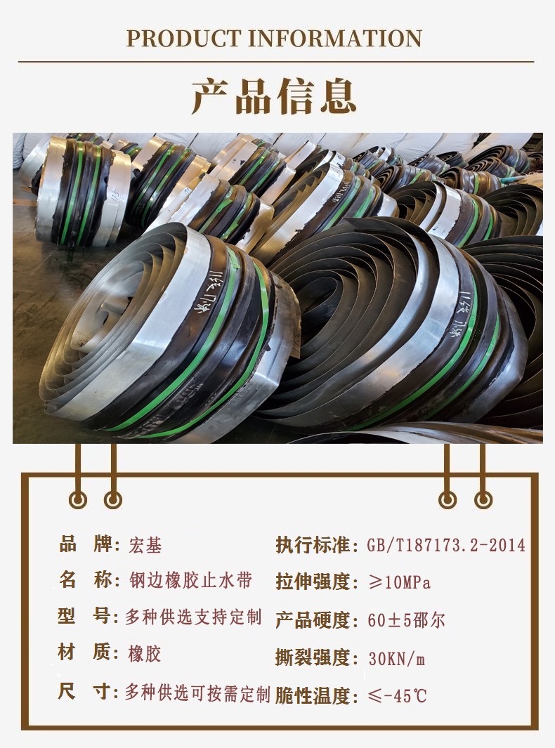 鋼邊橡膠止水帶主要用于混凝土現(xiàn)澆時設(shè)在施工縫及變形縫內(nèi)與混凝土結(jié)構(gòu)成為一體的基礎(chǔ)工程,如地下設(shè)施、隧道涵洞、輸水渡槽、攔水壩、貯液構(gòu)筑物等