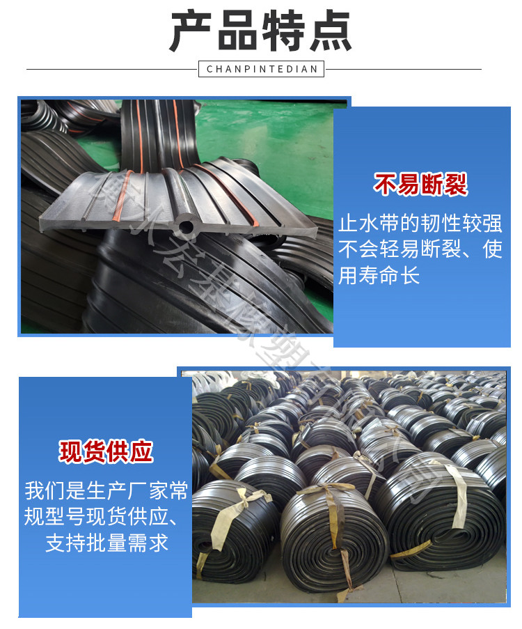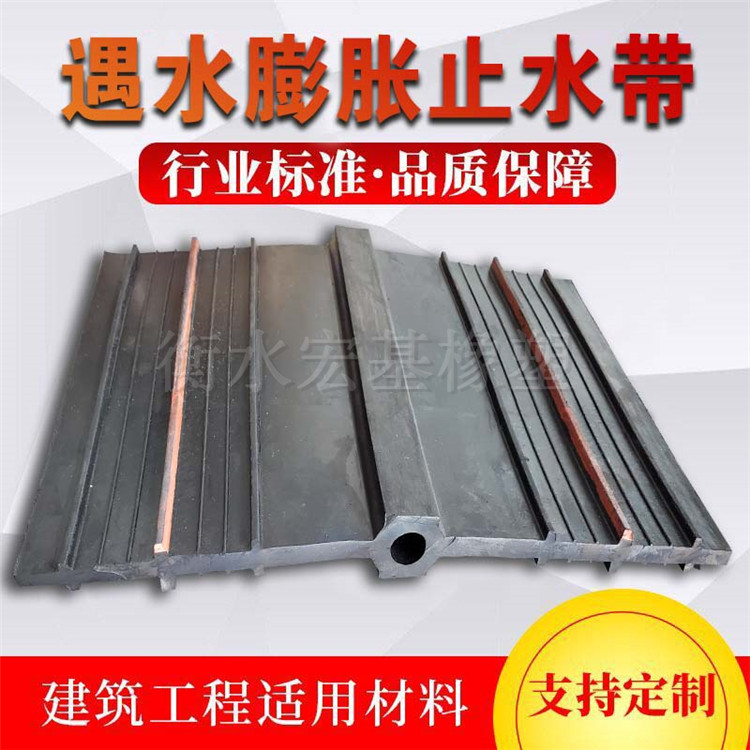 遇水脹膨脹止水帶除具有一般橡膠止水帶的功能外,其主要特點是內防水線選用了具有遇水脹大工程的特別橡膠制成。這樣在脹大橡膠遇水脹大后增強了止水帶和構筑物的緊密度,使防水、止水作用更好。因此遇處理了長期困擾人們的盤繞滲漏問題。執行GB18173.3-2014規范。